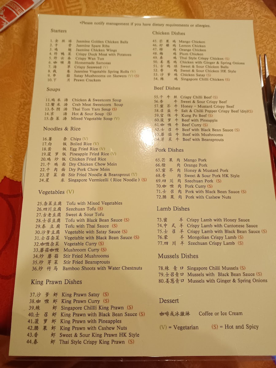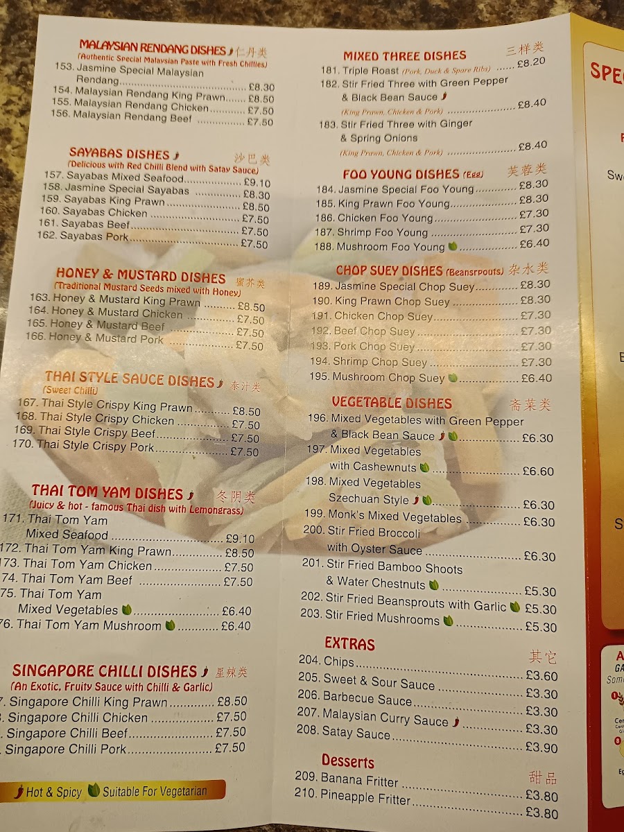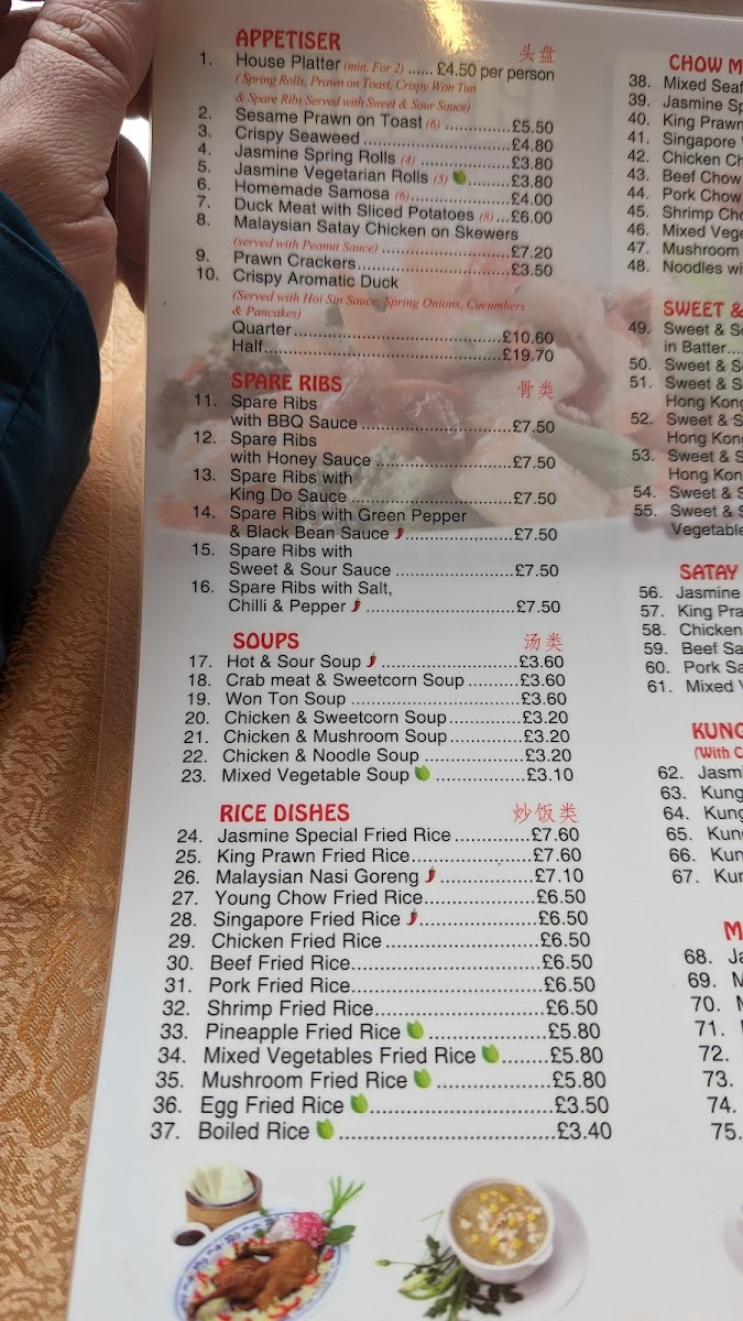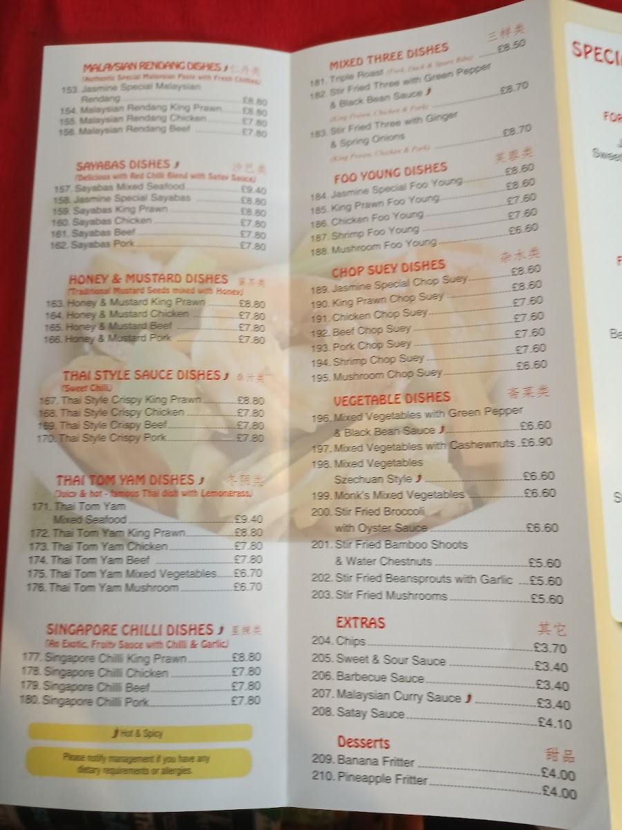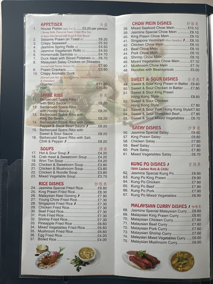 The menu at Jasmine Restaurant offers a balanced selection of traditional Chinese and Asian dishes, presented in a straightforward, approachable style. Whether you’re in the mood for casual dining or a relaxed family meal, the variety here reflects both comforting favourites and inviting flavours.